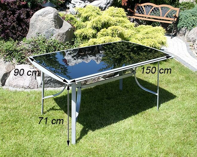 Konstrukcja stołu wykonana jest z wysokiej jakości aluminium która jest malowana farbą proszkową. Blat stołu Verona to hartowane szkło w kolorze czarnym. Szklany blat posiada otwór z zaślepką do umieszczenia parasola