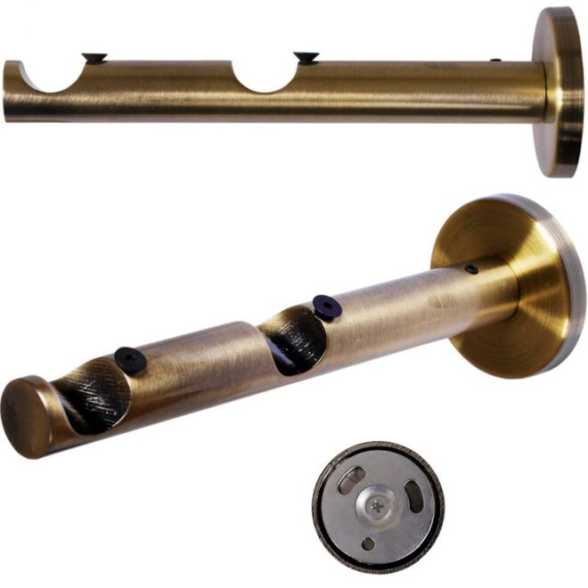 Wspornik karnisza o średnicy rurki fi 19+19 wykonany jest z metalu, pokrytego powłoką galwaniczną oraz dodatkową warstwą utwardzonego lakieru, która zapewnia doskonałą ochronę powierzchni przed ścieraniem.