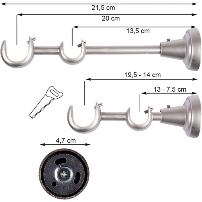 Wspornik karnisza o średnicy rurki fi 25+19 wykonany jest z metalu, pokrytego powłoką galwaniczną oraz dodatkową warstwą utwardzonego lakieru, która zapewnia doskonałą ochronę powierzchni przed ścieraniem.