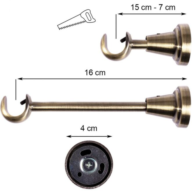 Wspornik karnisza o średnicy rurki fi 19 wykonany jest z metalu, pokrytego powłoką galwaniczną oraz dodatkową warstwą utwardzonego lakieru, która zapewnia doskonałą ochronę powierzchni przed ścieraniem.
