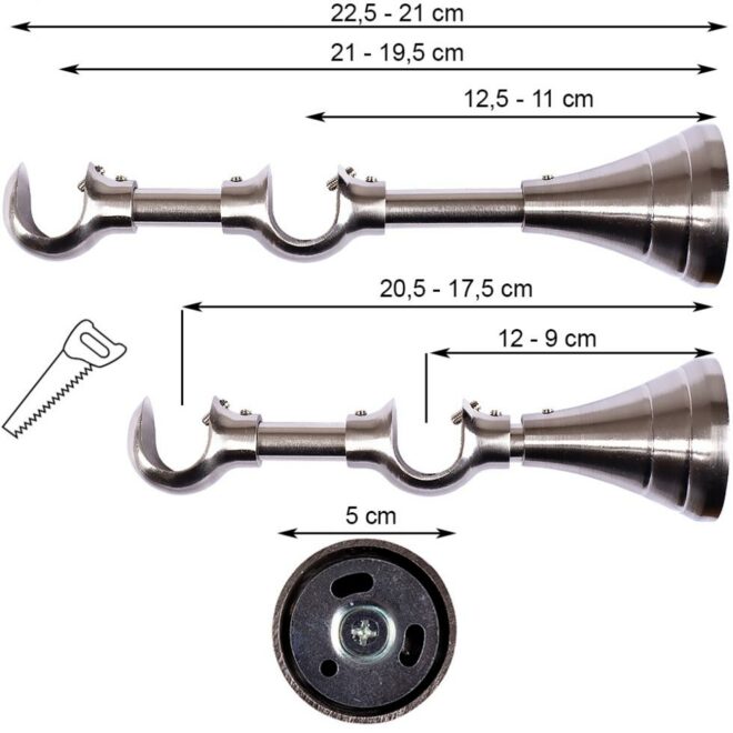 Wspornik karnisza o średnicy rurki fi 19+19 wykonany jest z metalu, pokrytego powłoką galwaniczną oraz dodatkową warstwą utwardzonego lakieru, która zapewnia doskonałą ochronę powierzchni przed ścieraniem.